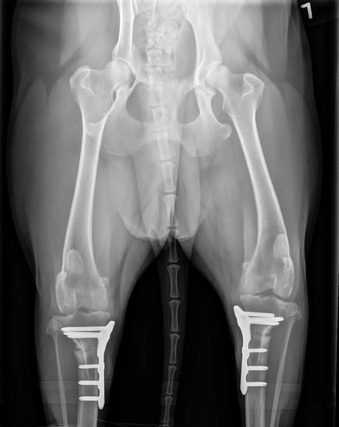 I know firsthand how challenging this can be! Lily had bilateral TPLOs (surgical repair of both of her cranial cruciate ligaments) done in October 2025 by Dr. Travis Reed. The surgery went smoothly, but she still required eight weeks of strict activity restriction and another eight weeks of very gradual return to activity.